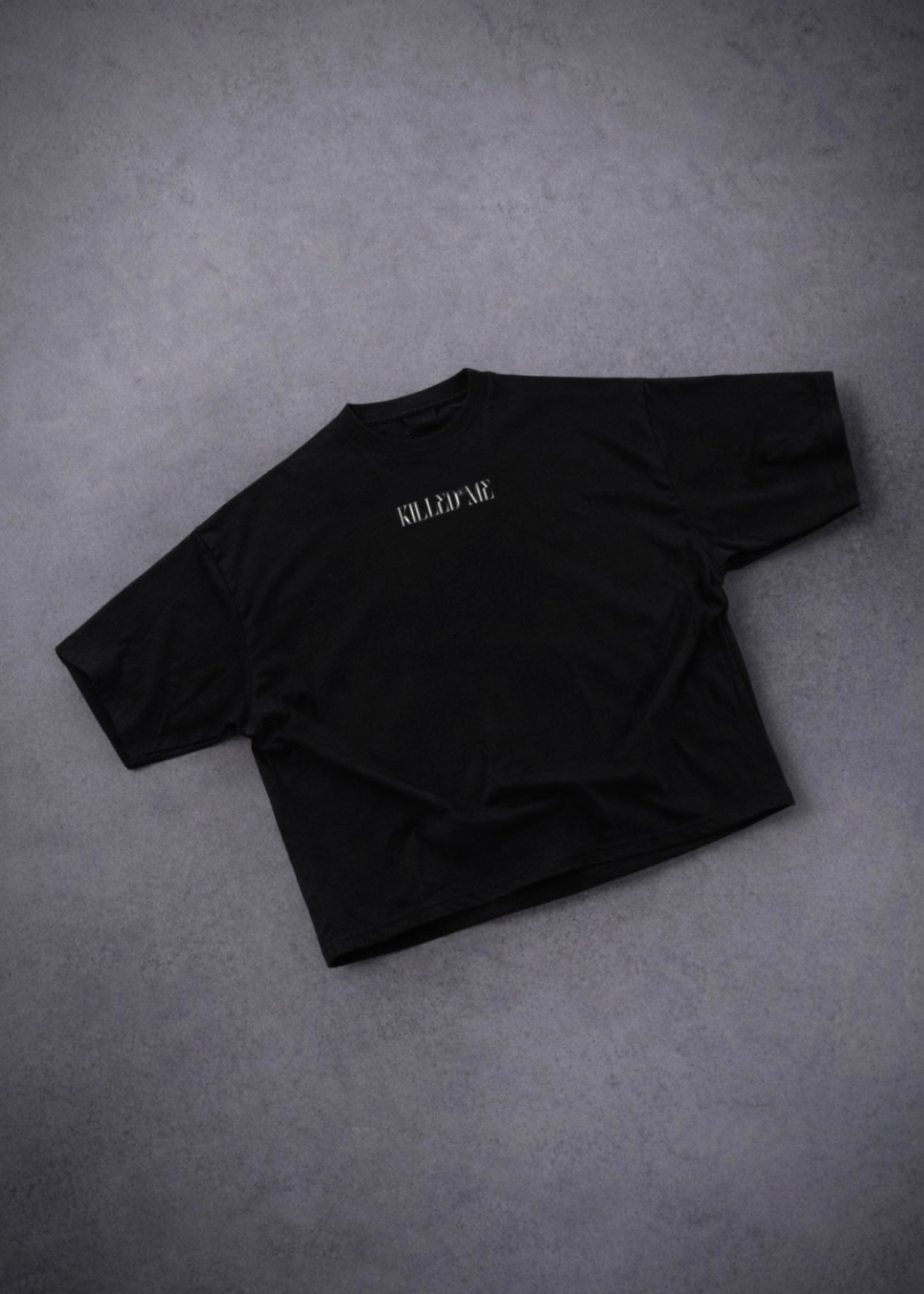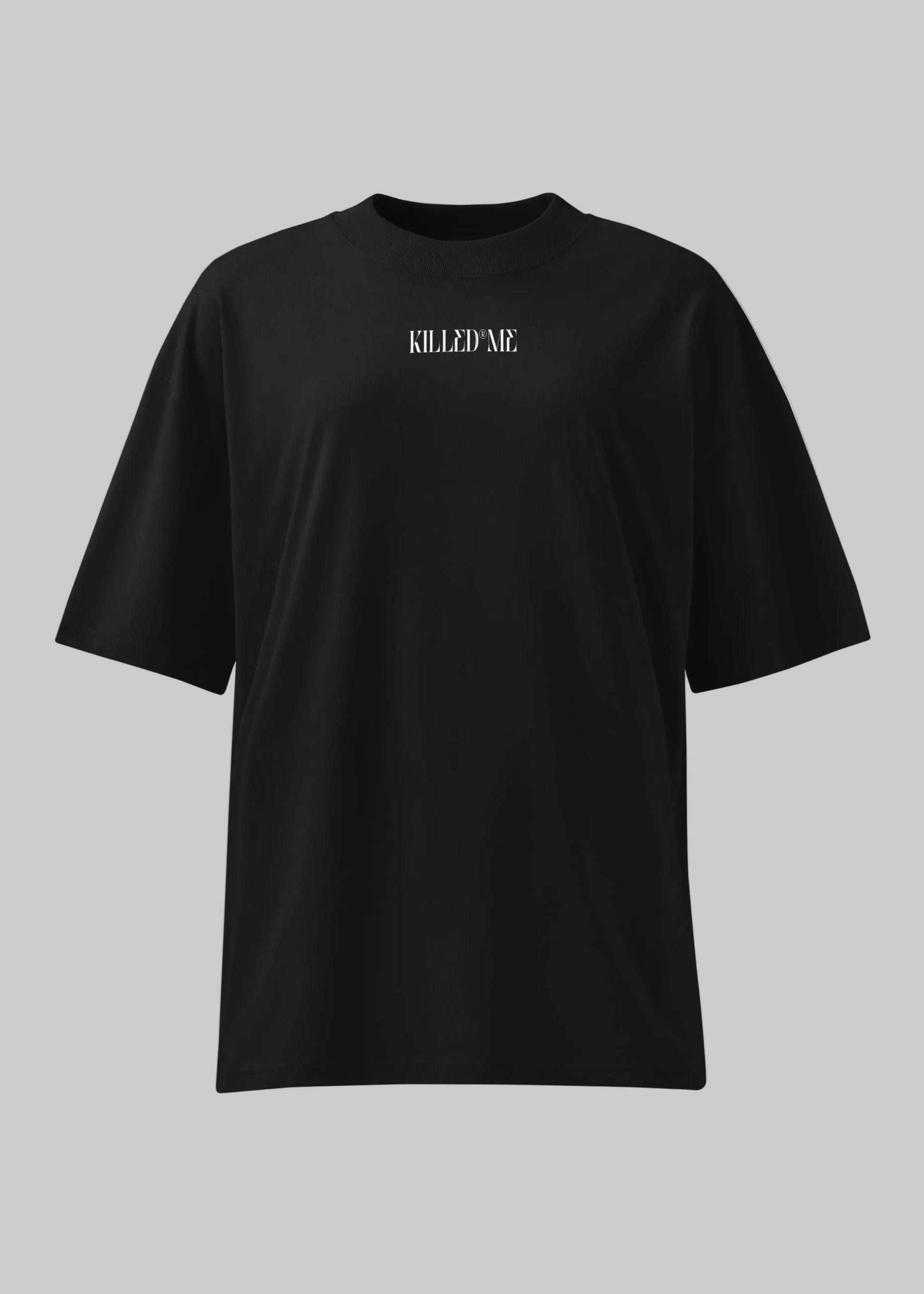 Black oversized t-shirt featuring LADYBOYS KILLED ME® print.